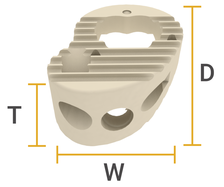 • The wedge uses the highly advanced interbody fusion material, PEEK-OPTIMA® HA Enhanced compound (Hydroxyapatite).